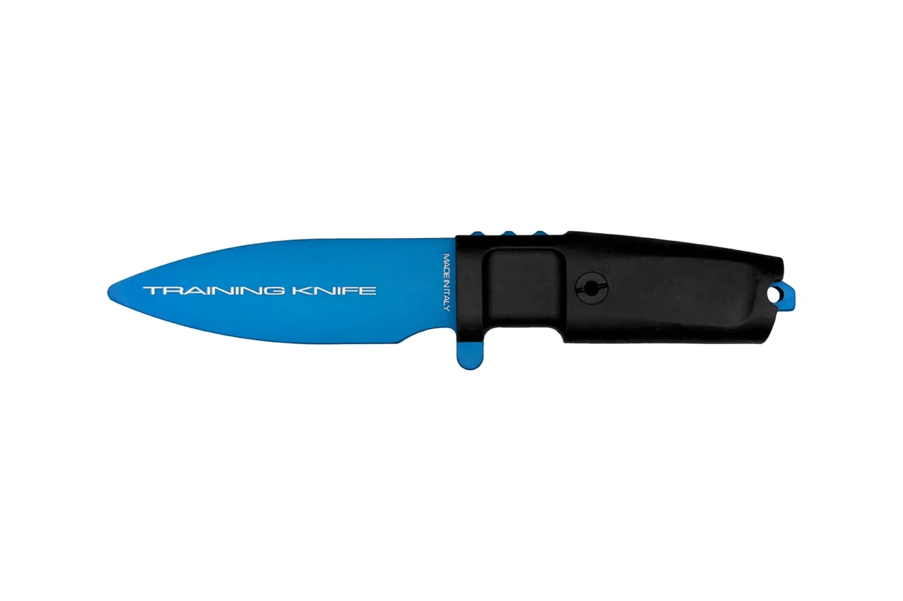 All training knives are produced in a metallic blue colour which makes them easily identified even when sheathed.