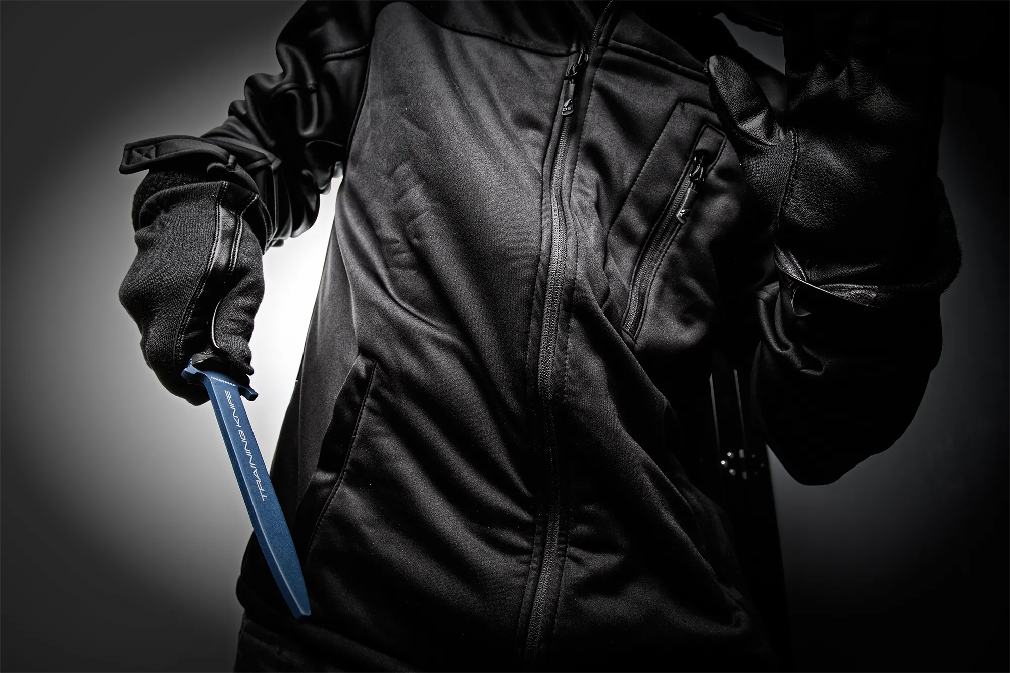 All training knives are produced in a metallic blue colour which makes them easily identified even when sheathed.