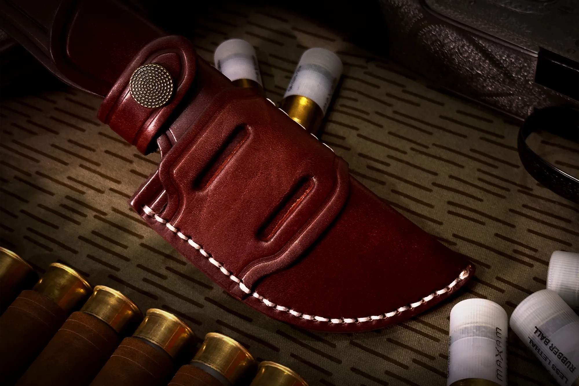 Every VENATUS knife comes with a leather sheath, crafted with the same care reserved for the blade itself. But it is not just about aesthetics: it is a technical element, designed to adapt to the hunter’s body and movements. It is the first ambidextrous and modular leather sheath, allowing different carry configurations: