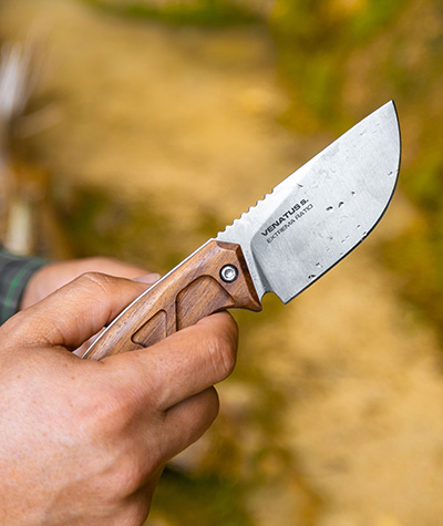 Both the VENATUS F in Nitrogen and Böhler N690 (58 HRC) are available with either a walnut wood or black G10 handle, meeting the diverse needs and personal style of every hunter.