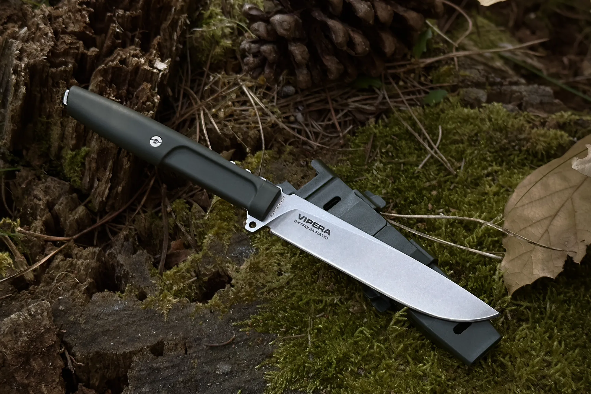 Nitrogen steel guarantees stainlessness, excellent edge retention, and easy resharpening even with makeshift tools, while the advanced drop-point profile becomes indispensable for field work requiring a robust tip. This makes Vipera models with Nitrogen steel and a Stone Washed finish ideal allies in wild environments and emergency situations.