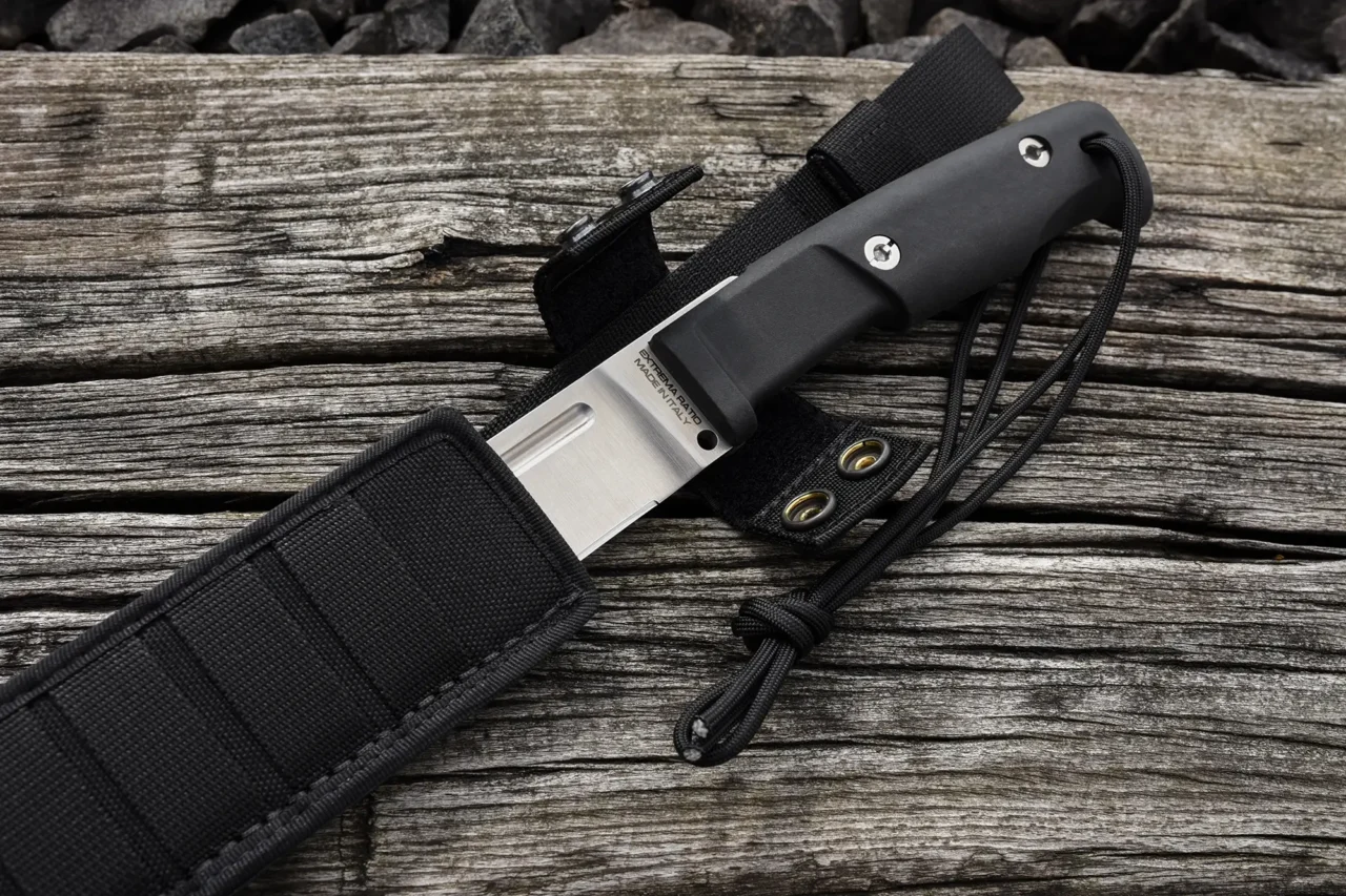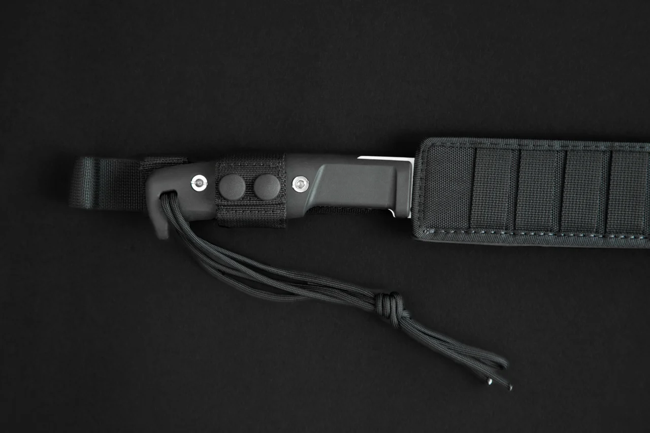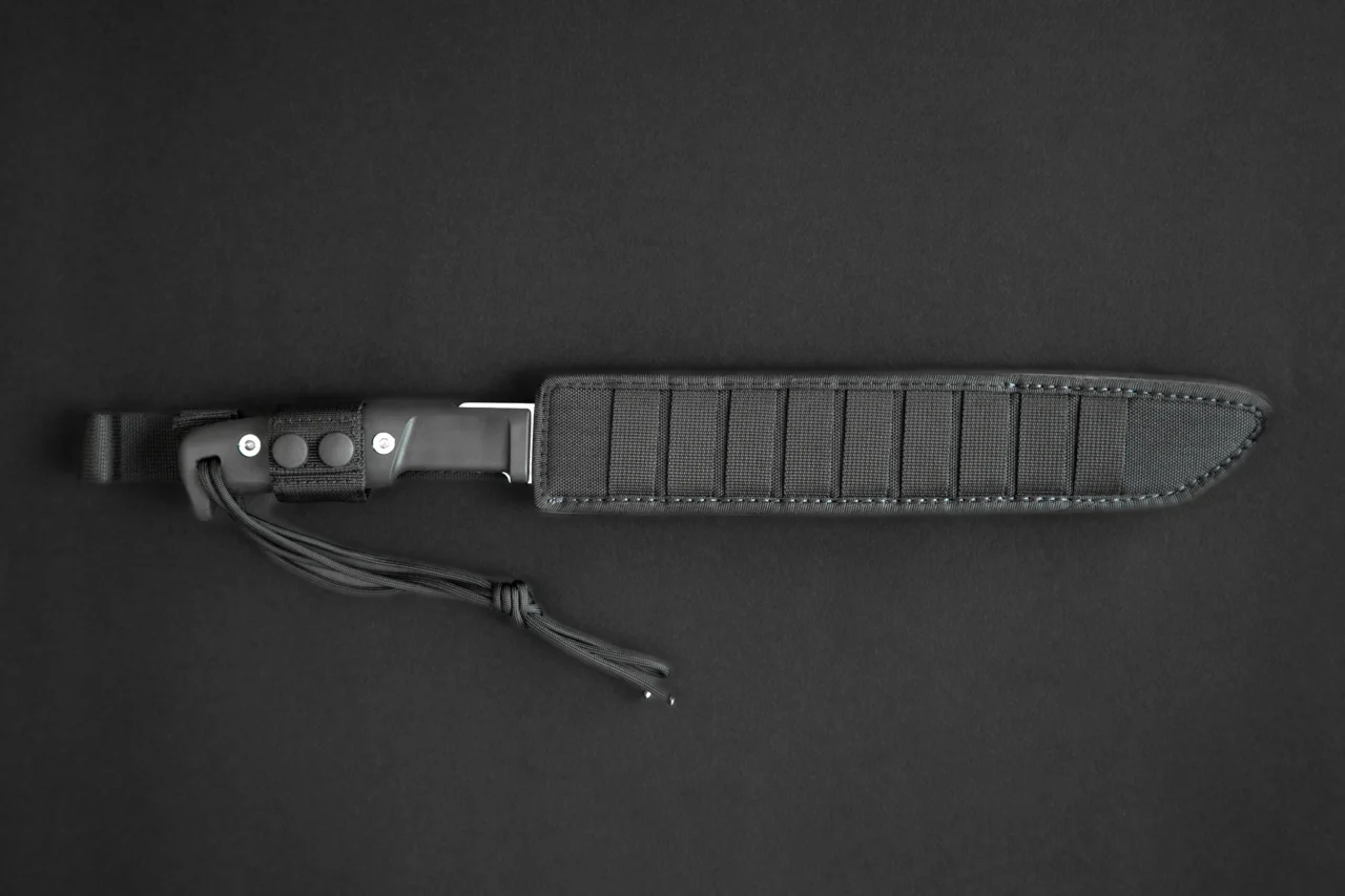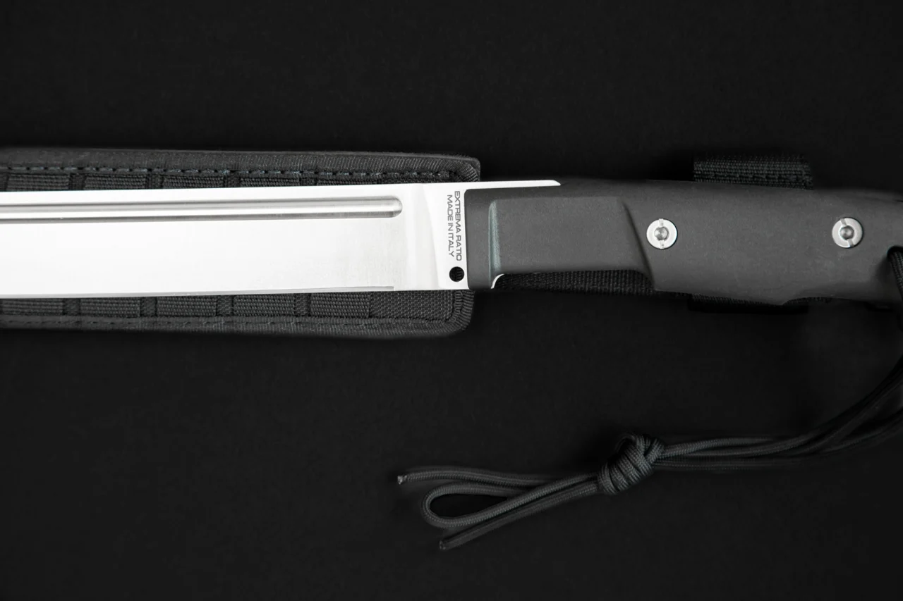 The black handle is made of Forprene. The black Cordura sheath is equipped with M.O.L.L.E. system webbings, which guarantee safety during carry and protects the knife from shocks that could reduce its efficiency.